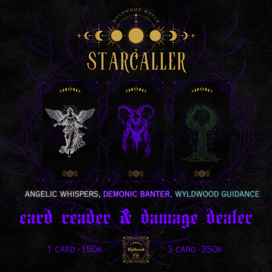 What is written in the stars for you? Feel a little lost, and need some guidence? Feel free to come to a personal cardreading with our wytches. Sit down, relax, and let the Wytches of the Wyldwood give you some comfort and guidance. The wytches use different kind of cards and divination to grant guidence, please ask them directly if you want to know more or have any questions.